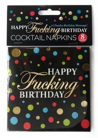 Happy Fucking Birthday line of partywares are approved by sassy grandparents and anyone that enjoys a good laugh on their special day!andnbsp; This line of hilarious party products has been regarded by media outlets worldwide as the Official line of adult-themed disposable paper products of 2022. This beautifully patterned line of tableware features 8 high quality paper napkins with elegant gold foil stamps.Turn your next ordinary party into a fucking high class function with any of our fine paper products. Complete this look with coordinating Happy Fucking Birthday balloons, straws, candles, games and more!