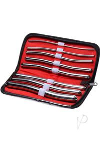 The Hegar Sound Set is a urethral dilator sound set with a full set of 8 sounds. Each sound has a different sized end, thus the set offers sixteen sizes, ranging from 3 to 19 millimeters in diameter. The purpose of this sound set is to gradually and gently enlarge the urethra, when inserted into the urethra for such dilation. The sounds can also be used in other areas other than the urethra, such as anally, vaginally or prostate. Each set comes in a zippered velvet-lined case for storage between each orgasmic session.Measurements:Ranges from 3 to 19 millimeters in diameterMaterial: Chrome Plated BrassColor: GreyNote: Includes 8 sounds.
