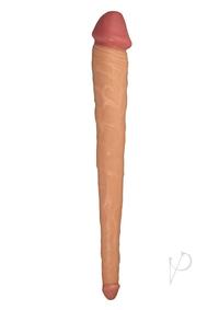 The Hero 14andquot; Double Dong features two phallic shaped ends, graduating in size from smaller to larger giving the user (or users!) two different choices to use from. andnbsp;This dong is very flexible, easily bending in half for solo, double penetrating play; but also firm enough to use double sided with a partner! Made from high quality, durable PVC and available in two skin tones. Fully bendable Dual ended Big tip and little tip Realistic veined texture Phthalates free Waterproof Material: PVC Size: Length – 14andquot;