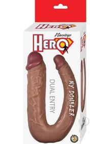 Hero My Doubler is perfectly curved to be used for double penetration solo and flexible enough to be used with a partner. andnbsp;One end thick and girthy, the other more slim and slender giving options on how the user would like to play! andnbsp;Please clean with toy cleaner before and after each use and use with water-based lubricants. Harness compatibleStrong suction-cup baseFlexible and feels realWaterproofPhthalates freeMaterial: PVCSize: Overall Length/Height – 8.5Dong 1 = 7 Insertable, Width – 1.75, Circumference – 5.5Dong 2 = 7 Insertable, Width – 1.25, Circumference -4.5