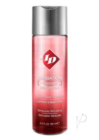 Arouse your senses with ID Sensation warming liquid. Water soluble and latex compatible, ID Sensation warming liquid warms on contact, providing increased excitement and enhanced intimacy. The perfect product to heat up your love life, ID Sensation warming liquid also serves as a great companion to ID Glide or ID Millennium when added sensation is desired for intimate activity. Does not contain nonoxynol-9.
