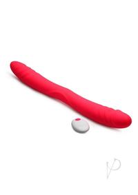 Double the pleasure with this silicone, vibrating double dildo! Made of premium silicone, it is phthalate-free and silky smooth so it can glide with ease as you and partner enjoy it! It can be used solo to enjoy double penetration or with a partner so you can both get the sensation of being filled up! The two ends have a slight difference in texture; one end has a realistic shaped head with a corona and the other has a smooth, tapered head. Both have textured ridges that give extra sensation with each penetrative thrust. To add to the fun, there are 3 speeds and 4 patterns of satisfying, buzzing vibration that you can control with the wireless remote! Enjoy the bendy shaft of this double dildo that can be bent into a U-shape for double penetration or face-to-face dildo-riding! Feel free to get it wet in the shower or with wet, juicy play! It has a waterproof rating of IPX5 so it can handle low-power water jets. Recharge the vibrator with the USB cable provided. Only use water-based lubricants for best results. Replace the remote control battery as needed. To clean, wash with warm water and mild soap and then spray with a toy cleaner before wiping dry.Slide up to your favorite lover and share intimate and deep penetration with them that you both can feel! As you lube up the dildo ends, slide on into yourself, then slide the other into them. Use the remote to turn on the vibration and enjoy how you both can feel the buzz as you ride. Ride face-to-face so you can taste their lips, kiss their neck and grind against them. Or have fun going back to back on all fours riding the dildo for double-doggy style! If you enjoy using it solo, bend it into a U-shape and enjoy double penetration as long as you keep the dildo only partially inserted. Play with a partner or on your own enjoying the ribbed textured and round heads to enjoy deep, playful pleasure!Measurements:14.75 inches overall length, 1.5 inches widest diameter at each end.Materials: Silicone, ABS PlasticColor: PinkNote: Remote distance up to 23 ft, requires one CR2032 battery (included). Rated as IPX5 waterproof and can handle low power jet stress; do not submerge in water. This double ended dildo is primarily intended for vaginal use. If used for anal, you run the risk of it going inside and getting stuck inside; there is no flanged base to ensure safe anal. Please use with caution and do not fully insert.Key Features:Textured and Bendy Dildo: This long, bendable dildo has two individually textured heads! One end has a larger, more realistic head while the other is smooth and tapered; both have grooved ridges for extra stimulation! Feel free to bend the dildo into a U-shape for face-to-face intimate fun!Remote Controlled Vibes: Choose between 3 speeds and 4 patterns of powerful, rumbling vibes. Use the battery operated remote control to change settings.Premium Silicone: Made of phthalate-free, body-safe, premium silicone. Use only with water-based lubricants.Waterproof and Rechargeable: Enjoy playing with this dildo in the shower or getting wet while you have fun! It has a waterproof rating of IPX5. After use, recharge using the USB cable provided.