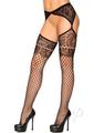 Lace top Industrial Net stockings with attached garter belt. O/S BLACK