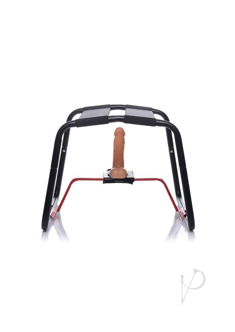 Attach your favorite dildo and this sex stool will give you the ride of your life! The Bangin Bench allows you to simulate sex from the top as you bounce up and down, aided by the stretchy straps of the seat. Use it on your own for penetrating intensity that is easy to control, or put on a show for your partner! You can even remove the red raiser bar and use it to straddle your lovers face while they pleasure you from below! Use the included strap-on harness to secure a dong, or simply attach a suction-cup dildo to the raiser bar. The Bangin Bench is easy to set up and discreet to store, with a durable steel frame that is built to last.Measurements:14.5 inches in height, 19 inches in width, 18 inches in depth.Material: Metal, ABS PlasticColor: RedNote: Dildo not included. Suction cup or strap-on compatible dildo may be used.