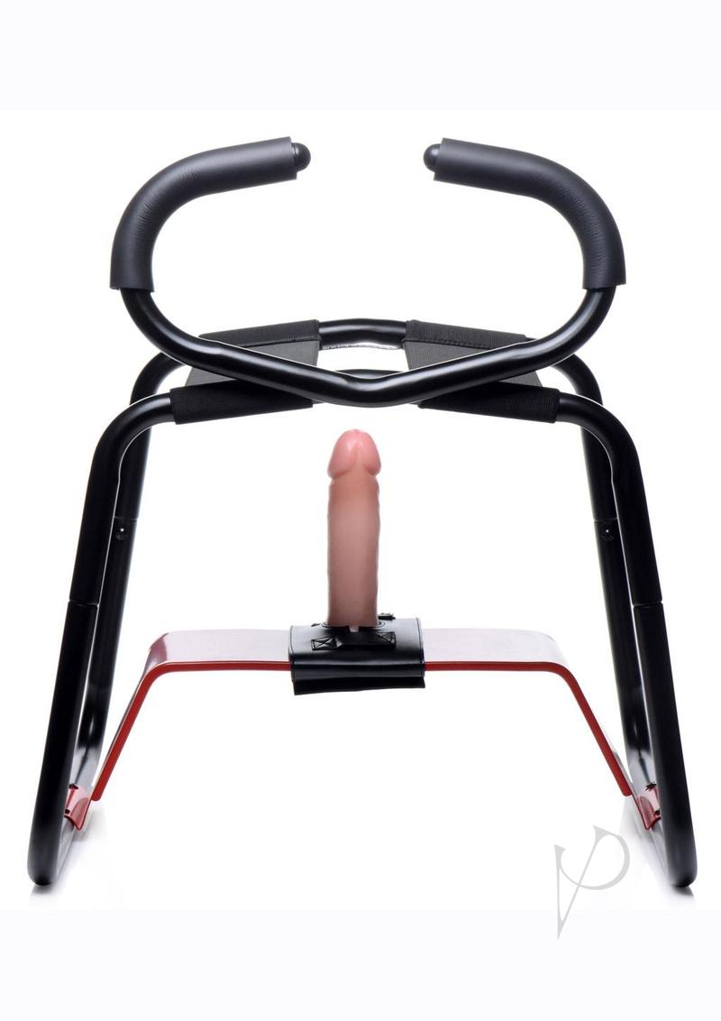 Ride and bounce with extra stability! This improvement of the legendary Bangin Bench features a convenient set of handlebars for comfort and steadiness while you go for a ride on your partners face or your favorite dildo. Built with durable steel for a confident ride, and flexible straps that support your body just enough so you can squat, hover, and grind without wearing yourself out!The included dildo platform can support all kinds of suction dildos so you can ride your favorite toy! Remove the platform for an open play area you can position yourself or your partner for a myriad of positions – explore what works for you and discover new kinks along the way.The EZ-Ride is easy to assemble and disassemble in case you need to hide it away!Measurements:Stool Measurements: Length 19.4 inches, width 19.3 inches, height 15 inches without handle bar 21 inches with handle barOther Measurements: Strap width 4 inches, dildo bar width 5 inches, dildo harness diameter 1.5 inchesMaterials: Metal, Elastic, PU Leather, VelcroColor: Red, BlackKey FeaturesRide With Comfort: The attached handle bar gives you greater stability while you ride! Sit your booty down and enjoy squatting, grinding, and riding with additional comfortDurable Steel Design: Built for sturdiness and durability, with an easy-to-assemble design so you can go for a bangin ride ASAPUse Your Favorite Dildo: The included raiser bar can accommodate most suction-based dildos so you can ride the dong of your choice with comfort and freedom of movementVersatile Position Aid: Designed for a variety of positions to spice up your bedroom and help you and your lover explore different love making methodsRide Faces With Ease: The elastic bands allows you to hover and grind on your lovers face with just the right amount of weight so both of you can enjoy facesitting fun