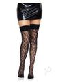 Leopard Net Thigh Highs With Wide Band Top O/S Black