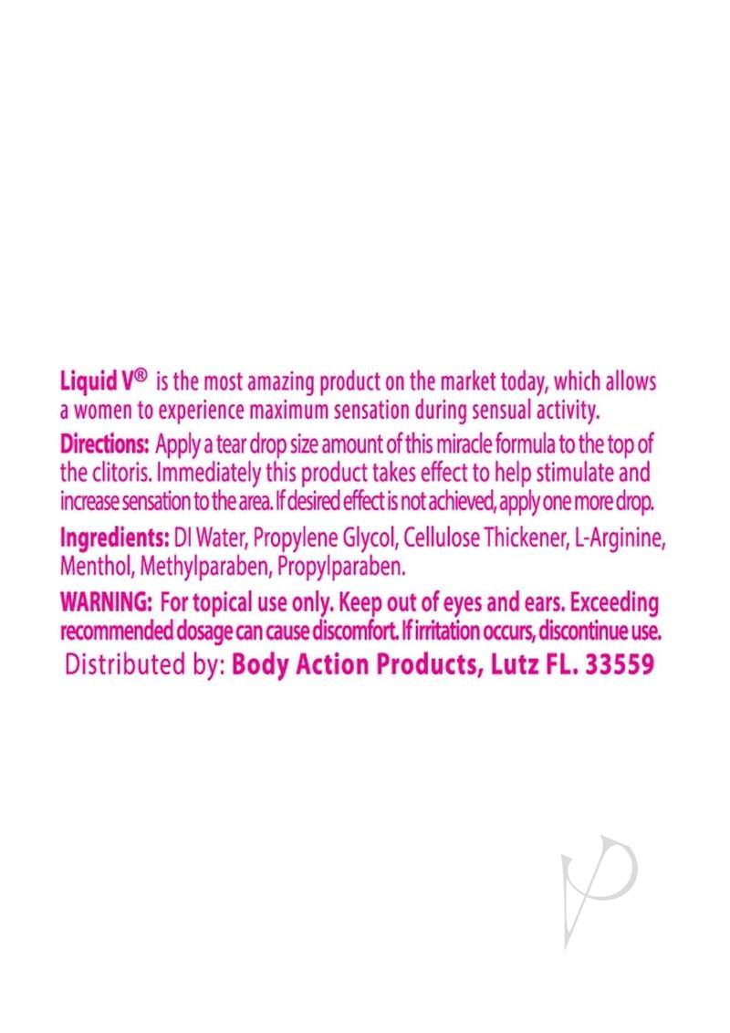 Liquid V is a maximum strength topical gel that amplifies pleasure for women immediately on contact. It is formulated to help women who want to enhance their personal experiences.Achieve the ultimate pleasure!Produces a tingling sensationHelps increase pleasurePerfect for women of all ages!Maximum Strength