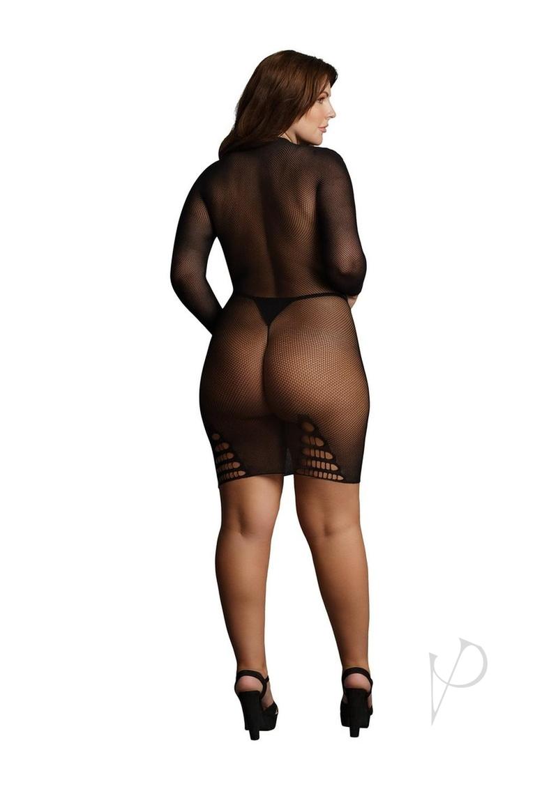 Le Desir Long Sleeve Fishnet Dress – Queen – Black