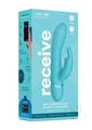 The Receive dual-stimulating massager provides simultaneous vibration in its insertable shaft and in the rabbit ears that provide direct external stimulation to the clitoris. The Receive is made of body-safe silicone and offers 20 powerful vibrating functions with 12 speeds to choose from.