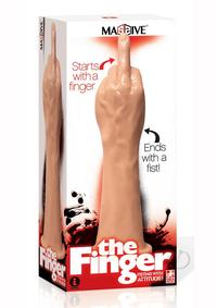 Every fist starts with a finger, and if you can get past the first one, you`re half way home! Massive presents our entry-level fisting trainer, The Finger, the one with attitude. Ergonomically designed for easier entry, it`s also got nearly fourteen inches of forearm fun! So go ahead, give yourself The Fingeryou`ll thank us later.