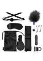Everything you need for a naughty night of BDSM fun is here! This 11-piece set includes the following: a set of nipple clamps, a silicone 10-speed vibrator, a feather tickler, 2 satin straps, a satin paddle, a satin blindfold, a silicone ball gag with satin straps, a 32-mm c-ring, and a small single-speed bullet that fits perfectly to make the c-ring vibrate. Additionally there is a matching satin storage bag. The entire set is created in a matching Black, so you can mix it up with the rest of your Merci collection.