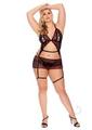 Barely Bare Mini-Skirt, Garters, Bra and G-String Set – Plus Size – Black