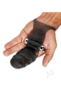 This uniquely shaped vibrating G-spot stimulator will take fingering your partner to a whole new level. The waterproof textured finger sleeves slips over your first two fingers, with a wrist strap that cradles the vibrating bullet in the palm of your hand. The uniquely shaped, ribbed, vibrating sleeve is ideally shaped to provide maximum pleasure while hitting all her hot spots. One size fits mostMeasurements:6.25 inches in length, 1.85 inches in width, stretch to fitMaterial:andnbsp;TPE, ABSColor:andnbsp;BlackNote:andnbsp;Requires 3-tab batteries, included.