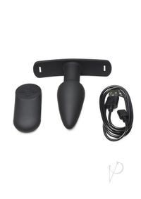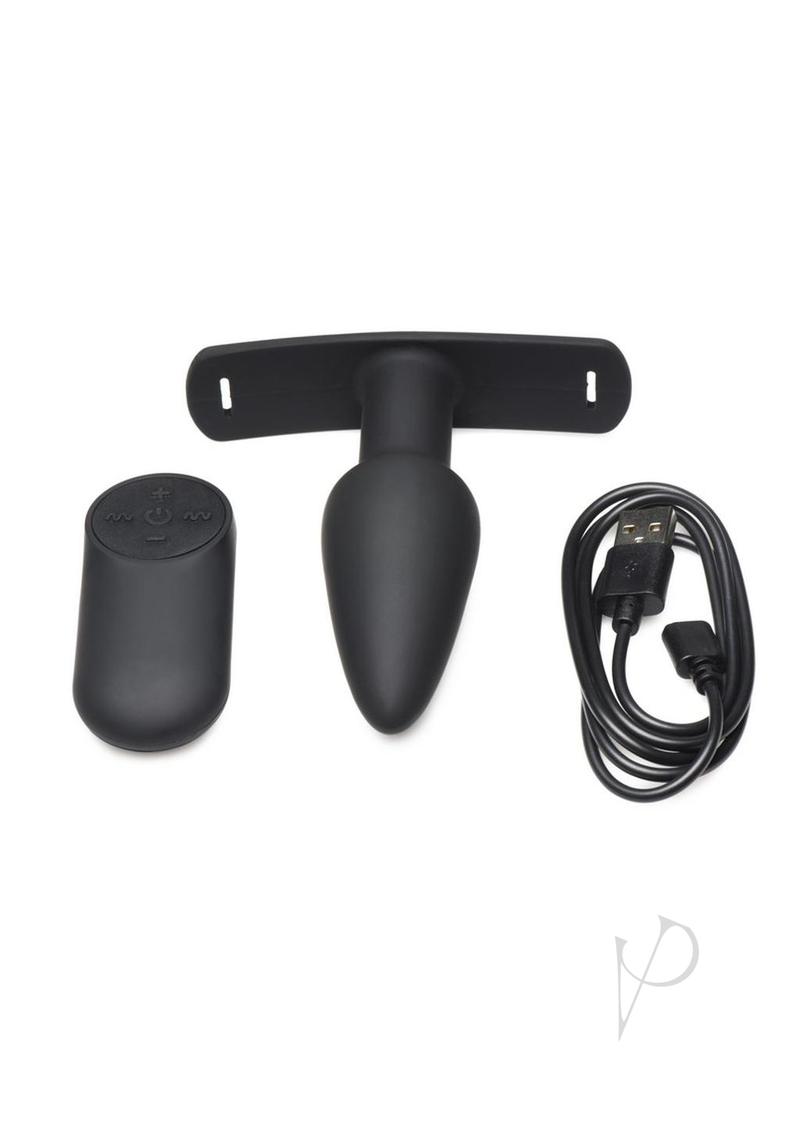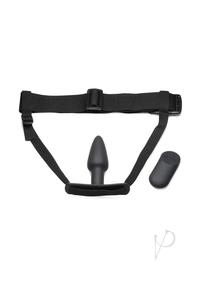 Train your booty to hold a plug in place with the assistance of this harness! The plush, premium silicone plug is perfect for beginners who want to explore long, anal sessions and some light bondage. With a slim, tapered tip the plug can glide in with a little water-based lube easily. The base widens out and then decreases size for the small neck that keeps the plug from going in too far. The thin base makes wearing it between your cheeks comfortable for hours at a time. Use the nylon harness to hold the plug in place while you go about your daily activities and tasks. As a bonus, you can also explore pleasure for longer durations, as well! Use the battery operated remote control to turn on the vibrator and enjoy 4 speeds and 7 patterns of buzzing vibration in your derriere! The harness is fully adjustable; simply use the plastic buckles to tighten or loosen per your own comfort. Recharge the vibrating plug using the USB cable provided. Replace remote control battery as needed. After use, wash the plug with warm water and mild soap, then rinse and spray with a toy cleaner before wiping dry and storing in a cool, dark place separate from other silicone toys. To clean the harness, soak in a solution of warm water and mild soap before rinsing and letting air-dry.First, turn the vibrator on and let it pair with the remote. Then use plenty of lube on the toy and inside your derriere; it can help to use a lube shooter to get lubricant inside of you beyond the sphincter muscle. Connect the plug to the harness and then slowly push the plug into your hole, taking your time as you do. Once inside, adjust the harness straps and let yourself move around. Turn on the vibrator and give yourself the pleasure of feeling buzzed for as long as it`s inside! Hand the remote to a partner for them to control and play with you from across the room!Measurements:Waistband adjusts from 13 inches to 24 inches in circumference, unstretched.Crotch strap adjusts up to 25 inches in length.Plug is 3.9 inches insertable, 1.3 inches at widest diameter.Materials: Silicone, Nylon, ABS Plastic, POM PlasticColor: BlackNote: Remote control distance up to 32ft, requires 1xCR2032 battery (included). Key Features:Slim Tapered Plug: The slim tip makes insertion easy and the gradual taper helps you stretch open and wider. The plug tapers down to a smaller neck for safety and has a thin base so you can wear it comfortably for hours!Rechargeable Remote Controlled Vibes: Enjoy 4 speeds and 7 patterns of powerful vibration that rumbles in your derriere! Control it with the battery operated remote from up to 32 feet away! Recharge the vibrating plug using the USB cable provided between uses.Fully Adjustable Harness: The nylon harness is fully adjustable; use the plastic buckles to tighten or loosen the straps as desired. Use the harness to keep the plugs in place while you train your backdoor!Premium Silicone: Silky smooth, plush and body-safe premium silicone is the perfect material to put in your rear! Phthalate-free so play is worry-free, you can use water-based lubricant with it.