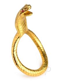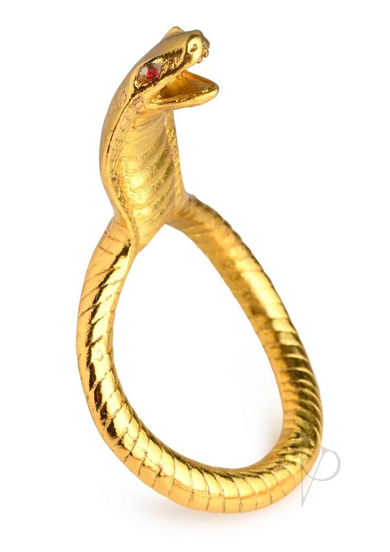 Surprise your partner with this royal Cobra King ring! With a gold cobra snake as the ring and glowing red eyes, they will be impressed by the stunning serpent in front of them – and it makes your trouser snake look good, too! It`s not only something beautiful to behold, it helps you keep an erection longer so you can enjoy enhanced sexual experienes. Made of zinc alloy, the metal is nickel-free for sensitive skin. Each red eye is made of acrylic. The ring is designed to be evenly weighted so it can stay comfortably in place on the center of your shaft with the cobra head standing up as much as your own serpent stays erect! To clean it, simply use water and mild soap after every use and spray with a toy cleaner.Because it is made of metal, this sexy snake is compatible with any lubricant type. Grab some lube and slide this onto a semi-erect or flaccid dong, slipping each testicle in and then pulling the shaft through after. Adjust so the cobra is facing up and stroke yourself so you get erect. The constriction ring helps maintain your hard-on longer so you can enjoy a longer solo or partnered session. Add a little spice into your play by running the ring under hot or cold water before wearing it to add in temperature play!Measurements:Overall length: 3.34 inches, Inner diameter: 1.77 inches (45mm)Materials: Zinc Alloy, AcrylicColor: Gold, RedNote: Metal is nickel-free. Compatible with all lubricant types.Key Features:Stunning Cobra Design: This gold cobra with red eyes will look stunning on your shaft and make you look like royalty!Erection Enhancing: The constriction ring helps increase blood in the phallus so you can stay erect for longer.Evenly Weighted Ring: The evenly weighted ring helps keep the cobra face up on your shaft for the best and sexiest presentation and comfortable wear!Temperature Sensitive and Nickel-Free Metal: Warm up or cool down the nickel-free metal by running it under warm or cool water before wearing.