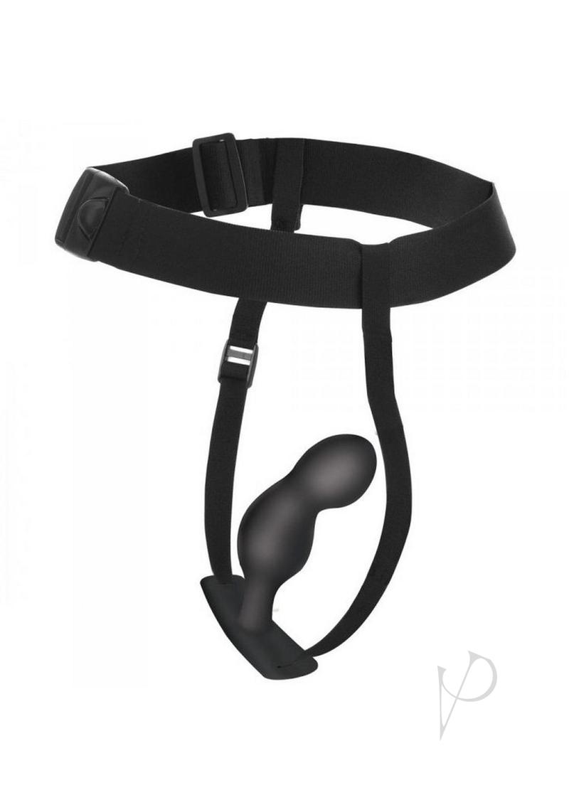 Train your backdoor and stimulate your prostate at the same time! With this prostate plug set and harness you can wear a small, medium or large prostate plug for hours and hours with no trouble at all! Want to be able to take larger sizes and keep a plug in longer? Start small and work your way up! Each of the three plugs are made of premium silicone so they are phthalate-free and body-safe; use only with water-based lubricants for best results. The plugs attach to the harness so you can easily keep it in place as you go about your day and do other activities. The harness itself is easy to adjust, comfortable, and has a wide elastic waistband with a buckle in front to close it.First, choose which of the three plugs you`re going to use. Then attach the plug to the harness and apply lots of water-based or oil-based lubricant to help glide the plug in. You can`t use too much lube when anal training, so don`t worry about using a lot! Once you`ve inserted the tip, slowly push the rest in at your own pace; be patient, relax, and feel free to touch or massage yourself so you open up more easily. Once inside, allow yourself to adjust and move around, and then slide the straps up over your legs and waist. Adjust each strap for comfort and enjoy!After wearing it for as long as you`re comfortable, push the plug out using your anal muscles and clean the toy with warm water and mild soap, then spray with a toy cleaner and wipe dry. Store separately from other non-anal toys and do not store with other silicone toys unless there is a barrier between them.Measurements:Waistband adjusts from 13 inch to 24 inch circumference, unstretched.Crotch strap adjusts up to 25 inches in length.Small plug: 3 inches insertable, 1 inches widest diameter.Medium plug: 3.5 inches insertable, 1.2 inches widest diameter.Large plug: 4 inches insertable, 1.3 inches widest diameter.Materials: Silicone, Nylon, POM PlasticColor: Black Note: Do not use silicone lube with silicone plugs. Key Features:Graduated P-Spot Plugs: The unique curve and shape of these plugs is designed to stimulate and massage your prostate for the ultimate in backdoor pleasure! Try small, medium and large to train yourself to enjoy larger sizes.Premium Silicone: Each of the three plugs are made from premium grade silicone; they are phthalate-free, body-safe and should be used only with water-based lubricants.Tapered Tip: The smooth, tapered tip makes insertion easy and comfortable.Fully Adjustable Harness: Keep your plug safe and secure in your derriere. The harness straps the plug in place and can easily be adjusted for a tight and secure fit.