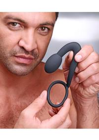 Prostatic Play Explorer Silicone Cock Ring and Prostate Plug – Black