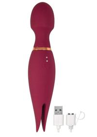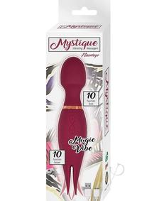 Mystique Magic Vibe is perfect for massage, couples, or solo play!  Dual motors deliver powerful rumbly vibrations to relax tense muscles or achieve powerful orgasms.  The flexible wand head features 10 gyrating patterns which can be controlled independently from it opposite end; featuring twin silicone ticklers which are perfect for nipples, the clitoris, under the testicles, and more!  Press and hold the center button to power on then press the button on each end to engage the dual motors.  Press and hold the center button again to power off. To charge, connect the magnetic charging points on the charger to the base of the product then plug the USB end into a power source.  Please clean with toy cleaner before and after each use.  Enjoy with a water-based lubricant. 10 Powerful bulb vibrations10 Powerful teaser vibrationsBody safe siliconeRoHS compliant Phthalates freeWaterproofMaterials: Silicone and ABSSize: Length – 7.25, Insertable length – 1.5Rechargeable: Charging Time – 90 mins., Working Time – 50 mins., Voltage – 3.7V