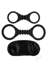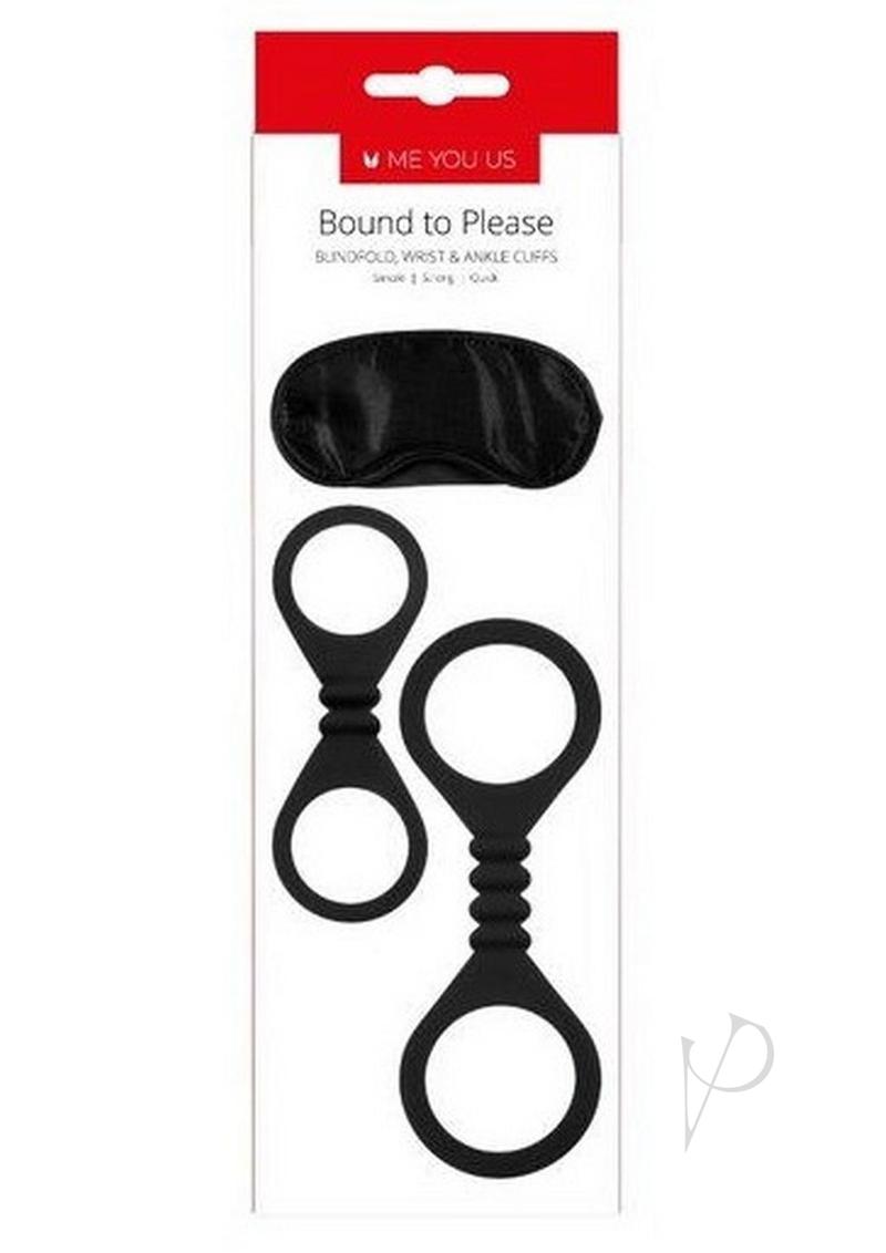 ME YOU US Bound to Please Blindfold, Silicone Wrist and Ankle Cuffs – Black
