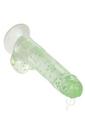A fully loaded smoke show! Weed leaf filled, glow-in-the-dark dong with firm, life-like feel. Extremely flexible design. Harness compatible. Sturdy suction cup base.