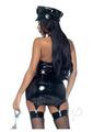 5 Pc Naughty Cop, Includes Vinyl Zip Up Garter Dress, Pin-On Badge, Belt, Police Hat, And Handcuffs. MEDIUM BLACK