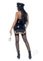 5 Pc Naughty Cop, Includes Vinyl Zip Up Garter Dress, Pin-On Badge, Belt, Police Hat, And Handcuffs. XS BLACK