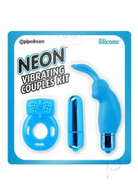 Get the party started anytime, anywhere with this incredible Neon Vibrating Couples Kit. Perfect for first-timers, this kit features a silicone mini rabbit vibe and a super-stretchy vibrating cock ring with a convenient removal bullet. With the push of a button the bunny`s flickering ears tickle and tease sensitive erogenous zones with pinpoint stimulation, while the vibrating cock ring delivers a thrilling buzz for both partners. Phthalate-free and body-safe, this kit will boost your performance and pleasure!
