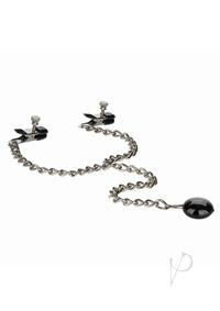 Blur the borders between pleasure and pain even further with the game-changing Nipple Play® Weighted Disc Nipple Clamps. Explore elevated sensation with 2 adjustable nipple clamps, a thrilling chain and unique weight. Clamp the naughty clasps to your body and enjoy every rush of stimulation.