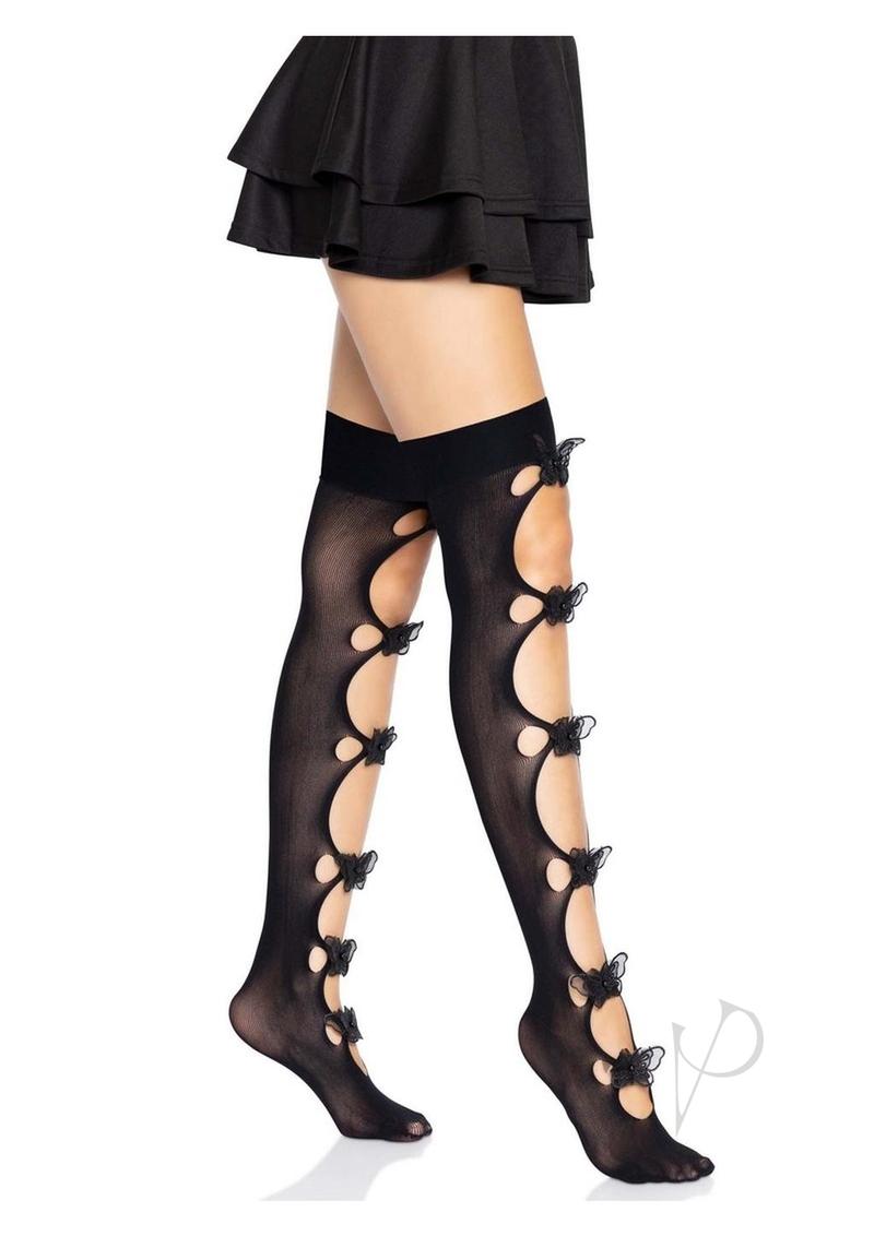 Leg Avenue Opaque Net Cut-Out Butterfly Applique Thigh Highs – O/S – Black