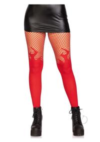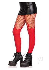 Opaque Flame Tights With Fishnet Top O/S Red