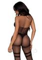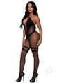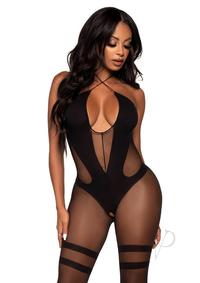 Leg Avenue Opaque and Sheer Keyhole Twist Halter Bodystocking – O/S – Black