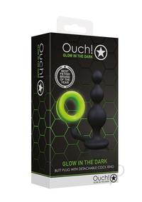 Ouch! Beads Butt Plug with Cock Ring Silicone Glow in the Dark – Green