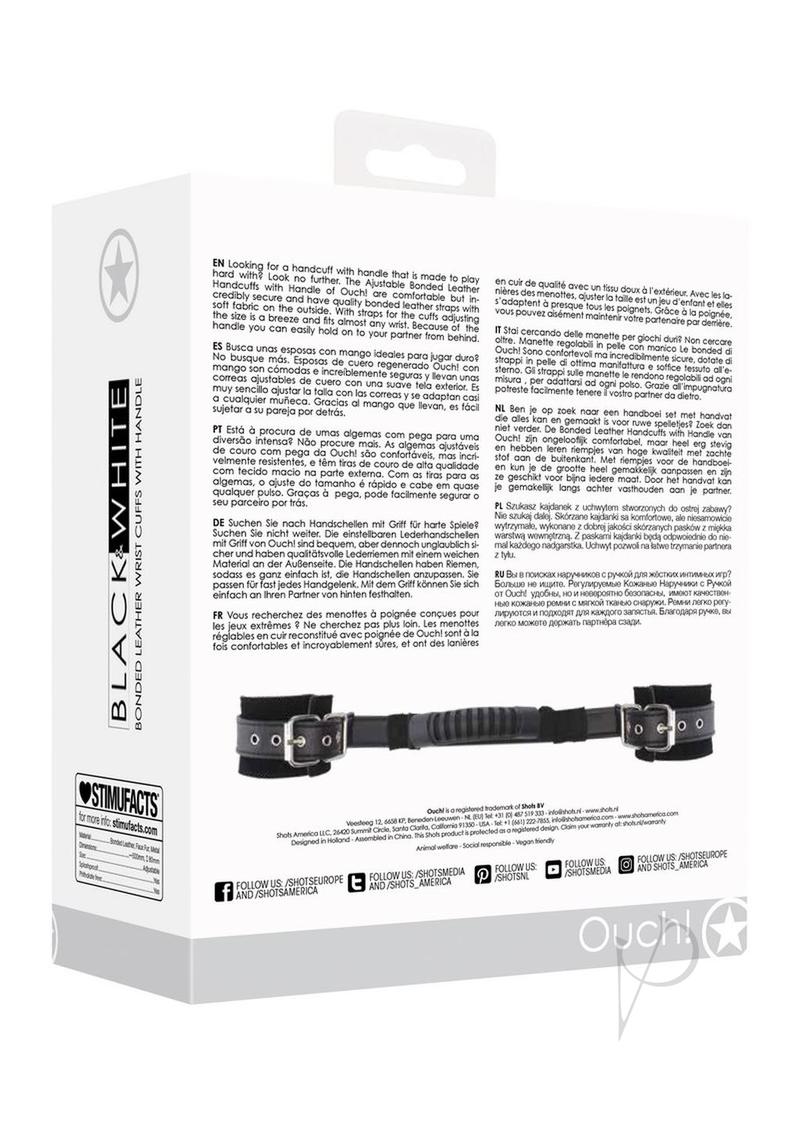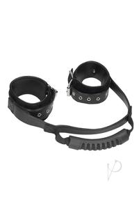 Ouch! Bonded Leather Hand Cuffs with Handle – Black