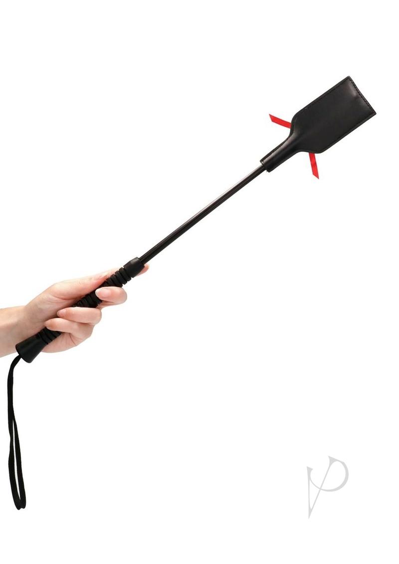 This short handled rectangular shaped black crop with red lace is the perfect way to discipline your partner.