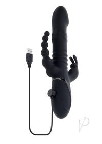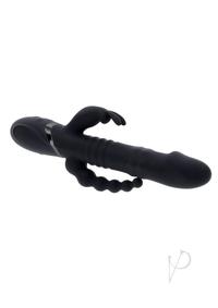 Freedom to Play:Turn it on and feel the Big Bunny Energy for yourself. Stimulating three erogenous zones at once, this energetic triple-shaft Rabbit Vibrator will leave you breathless. Two swirling beaded rings inside the main thrusting shaft provide a thrilling internal massage that begins at the realistically-shaped tip. Explore a tri-gasmic experience with the gently curved Anal Beads, powerful vibrations in the shaft, and external bunny shaped stimulator.Panel DetailsPlay with me (key feature): Triple stimulation from Anal Beads, thrusting shaft, and external stimulatorVibration: 7 vibrating speeds andamp; rhythms, 3 thrusting and rotating speeds andamp; rhythms Material: Body-safe Silicone, Phthalate andamp; Latex freeWaterproof: YesSize SpecsHeight: 10.3andrdquo;, Depth: 3.89andrdquo;, Width: 1.71andrdquo;Insertable length 6.25andldquo;, Insertable diameter 1.5