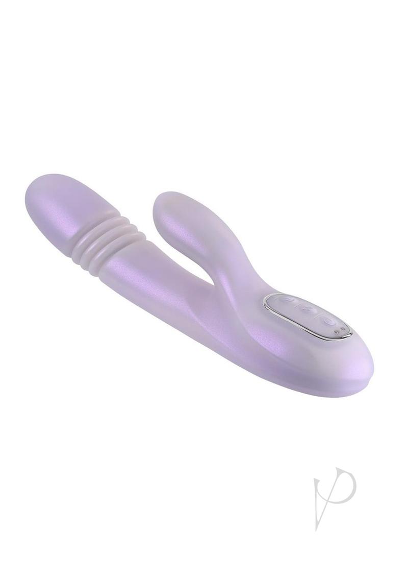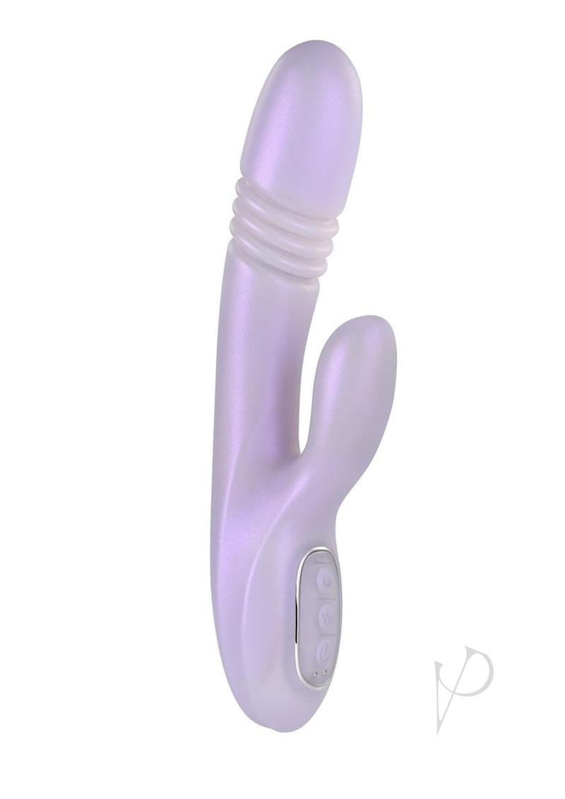 Bumping Bunny is a Rabbit Vibrator made of velvet-smooth silicone that heats up to a steamy 104 degrees, creating a triple threat of sensation that will have you melting. Explore the main shaftandrsquo;s 10 vibration settings and thrusting patterns designed for optimal G-Spot stimulation. The powerful bunny shaft operates independently, offering 10 speeds and rhythms designed to ignite delight.andnbsp;DetailsPlay with me (key feature): Thrusting, warming Rabbit Vibratorandnbsp;Vibration:10 speed thrusting andamp; vibrating shaft, 10 speeds andamp; rhythms in bunny shaftMaterial: Body-safe Silicone, Phthalate andamp; latex freeWaterproof andamp; Submersible: Yesandnbsp;Warranty: Five yearsandnbsp;Rechargeable: USB cable includedandnbsp;Size SpecsHeight: 9andrdquo;, Depth: 2.65andrdquo;, Width: 1.85andrdquo;