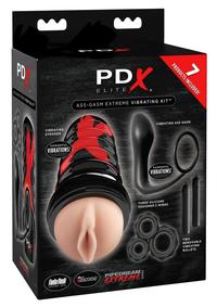 Pipedream Extreme Elite Ass-Gasm Vibrating Kit Masturbator with Bullets – Pussy – Vanilla/Black