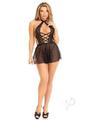 Leg Avenue Plunging Lace Halter Babydoll with Sheer Skirt and Lace G-String (2 Piece) – Large – Black