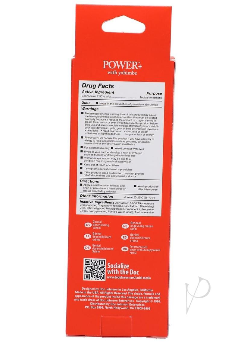 Get more banging for your buck with our Power+ cream! This prolonging cream contains 7.5% Benzocaine which acts as a desensitizing agent to help the man delay or prevent premature ejaculation. Odorless and tasteless. 2 oz.