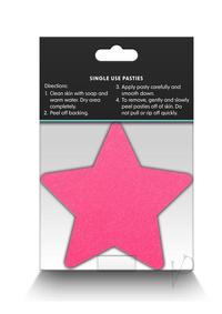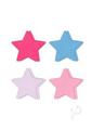 Pretty Pasties are intended for 1 time use. Package contains 4 pairs of star shaped pasties in assorted colors – pink, fuschia, thistle and blue. Self adhesive. Made with polyester material. Phtalate free. Clear packaging allows customer to view front and back of product selection. Instructions for use: clean skin with soap and warm water. Dry area completely. Peel off backing. Apply pastie carefully and smooth down. To remove, gently and slowly peel pasties off of skin. Do not pull or rip off quickly.
