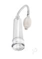 The Beginner Power Pump will give you the size and confidence you have always dreamt about without any harmful side effects. With each squeeze of the medical-style pump ball, your pleasure rod will grow bigger, thicker, and swell with power. Once you penetrate the smooth, flexible PVC opening, you`ll quickly discover throbbing, rock-hard erections that feel great and last and last with no midway performance letdowns! The clear vacuum tubes allow you to watch your cock grow, and the quick-release valve relieves pressure with a push of the button. Beware of imitations only this potent pump can deliver results that truly satisfy!To prolong ejaculation, slide the included enhancement ring over your shaft so that it`s nice and snug. The tight squeeze will prolong cumming, maintain your erection, and extend the fun.When you`re done, simply detach the cylinder from the vacuum hose and restore it`s like-new quality with Pipedream Toy Cleaner and warm water.High-Intensity Super Suction Medical-Style Pump Ball w/ Quick-Release Valve Perfect For First-Timers