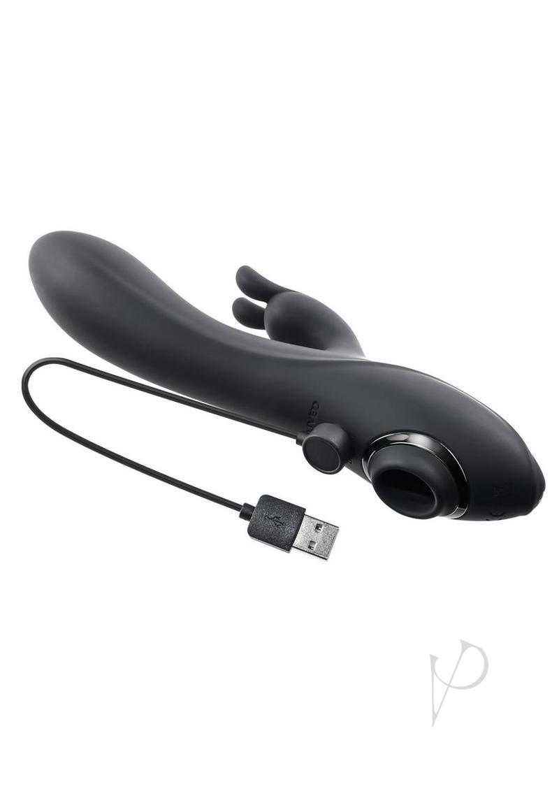 This hard-working triple-threat toy delivers three powerful experiences in one elegant shape. The flexible 10-speed main shaft gently curves and swells to a G-spot tip with circular textures at the head while the tireless 10-speed rabbit stimulator bops and bends with your body for intense stimulation. Flip the toy over for a glorious 3-speed suction sensation that pulls and teases, building to an erotic climax. Keep an easy grip with the textured handle and recharge magnetically via USB. Splashproof andamp; easy to clean.Triple-stimulation G-spot, rabbit andamp; suction vibratorCircular textured G-Spot head in 10-speed main shaft 10-speed rabbit stimulator3-speed suction stimulator Motors controlled independently Flexible shafts move with your bodyTextured shaft andamp; handle for solid gripWhite LED light illuminates buttons when in useMade from creamy smooth siliconeDetail made from black chrome-finished ABS plasticHeight: 8.34, Depth: 2.42, Width: 1.66Insertable length 4.5, Insertable diameter 1.57 Weight: Under .5 lb (7.6 oz)Phthalate andamp; latex freeSplashproof (not submersible) Magnetic rechargeable, USB cable included