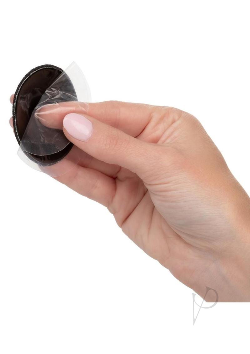 2 form-fitting pasties with gem accents included. Easy peel and stick application. Reusable.