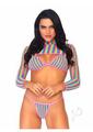 Leg Avenue Rainbow Fishnet Bikini Top, G-String, and Long Sleeved Crop Top (3 Piece) – O/S – Multicolor