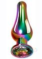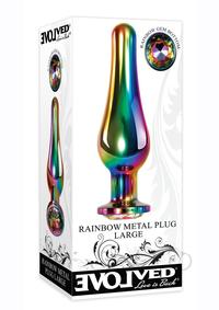 Indulge in back door pleasure with this large rainbow-colored metal anal plug that features an extra-long tapered tip for smooth and easy entry.Boost your orgasmic potential with a girthy plug while adorning your booty with a sexy, sparkling rainbow gem!Try heating or cooling your plug beforehand to indulge in a sensory twist.Use with plenty of lubricant, and clean with Evolved Toy Cleaner and hot water.Velvet drawstring bag included.Large rainbow metal anal plug with gemGreat for advanced playersExtra-long tapered tip for easy entrySlick andamp; stylish rainbow metal finishSparkling rainbow gem at safety baseIncludes black velvet drawstring bagMade from aluminum alloyRainbow gem made from ABS plasticWaterproofLength: 5.09, Depth: 1.65, Width: 1.65Weight: Under .5 lb