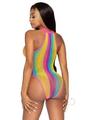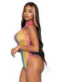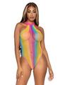 Leg Avenue Rainbow Striped Net Halter Bodysuit with Snap Crotch – Multicolor