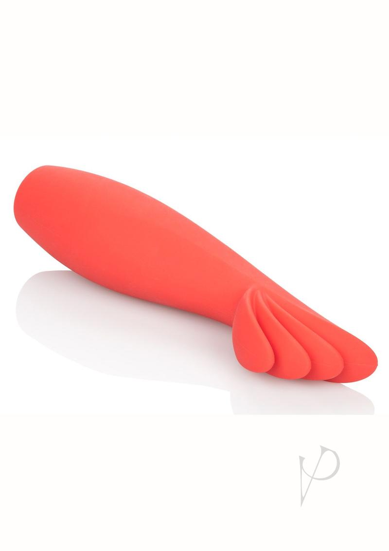 The Red Hot Blaze is sure to light a fire in your love life with the flickering teaser tips and 10 powerful vibration functions. The compact travel size, 100% play area and unique body make for a blazing good time. The 3 teasing tips, contoured shape and 100% play area passionately caresses your sensual sweet spots. The flickering tips and compact size deliver pinpoint pleasure, anywhere you go. Indulge personalized pleasure while the curved massager shimmies to the rhythm of 10 vivacious vibration, passionate pulsation and erotic escalation. Control this variety of orgasmic options with the easy-touch button and fan the flames of passion. Whether you`re taking a dip with a lover or indulging in a steamy solo session, look forward to up to 3 hours of waterproof vibration. Recharge pleasure and get back to playtime in only 2.5 hours with the provided USB cable. The flexible vibe is made from a hygienically superior silicone. This body safe material is unscented and phthalate free to keep your most sensitive spots happy and healthy.Dimensions:Vibrator: 5.5 x 1.25 in.Package: 2.25 x 5.25 x 6.5 in.