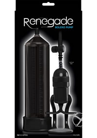 The Renegade Bolero Pump is a sleek penis pump that is designed to get him harder than ever before. The intense design enables one-handed pumping and provides powerful suction for a lasting performance. It also features a measuring ruler on the pump so the user can track his progress. The design has a 22 cm (9 inch) long industrial grade acrylic pumping cylinder, comes with a soft TPE donut base for extra comfort during use and is presented in a contemporary black packaging.
