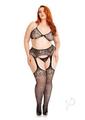 3 PC Rhinestone lace bra top, g-string, and fishnet garter belt stockings. 1X-2X Black