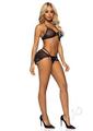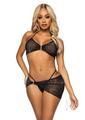 3 PC Rhinestone mesh bra top with ring accent, g-string panty, and matching sarong. Small Black